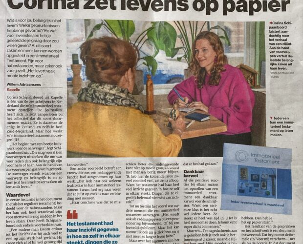 Van het uitreiken van een Immaterieel Testament maken we een bijzonder moment. Er is gesproken,…